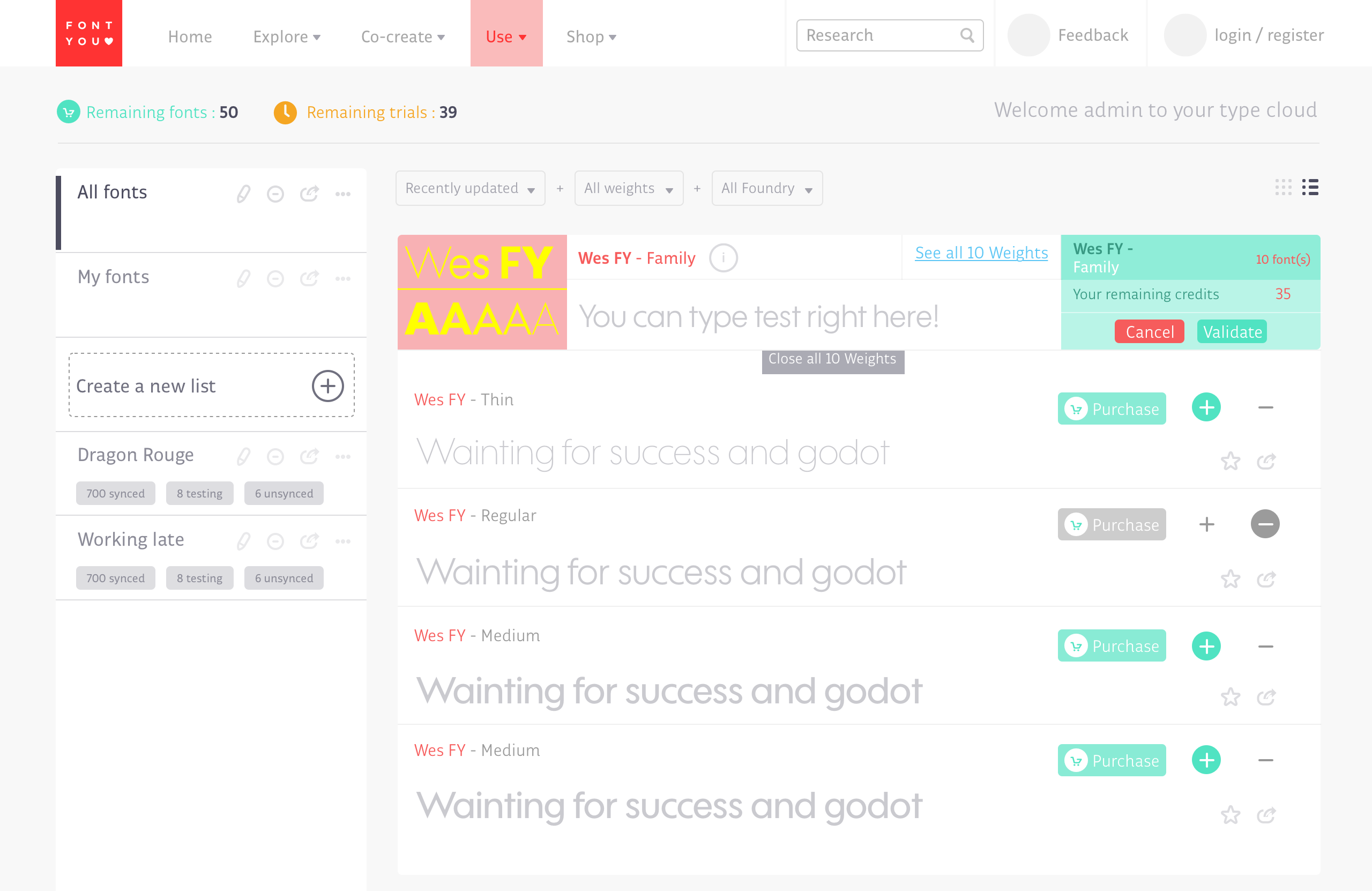 The last version of the platform I designed before the final closure of Fontyou due to the arrival of other actors like Google Fonts and Adobe.
